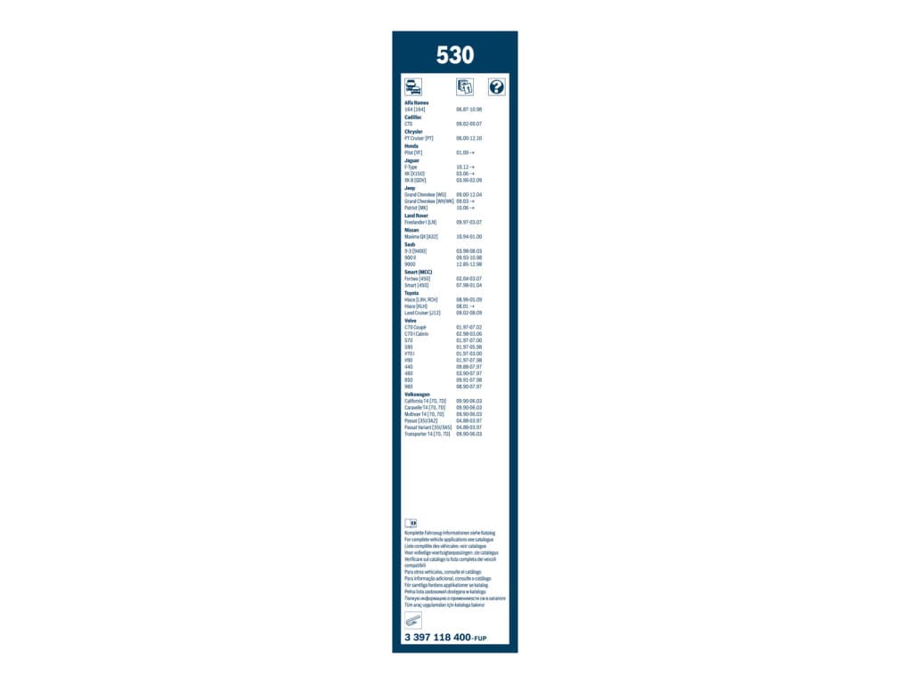 | Wiper blade type | Bracket wiper blade without spoiler |